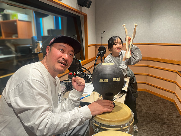 今回はスタジオにいろんな打楽器を持ち込んで、その音色の面白さを教えてくださいました。