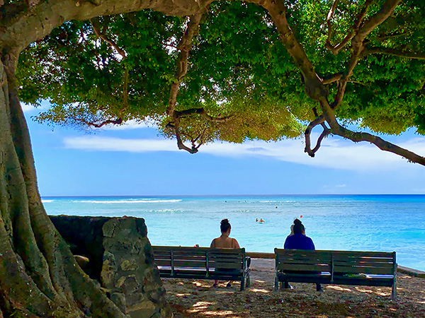 お天気のいい日は、まだまだ日陰にいるのが心地いいハワイの昼下がり。