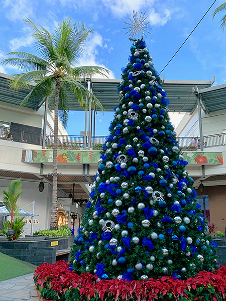 でもオープンエアのショッピングモール、アラモアナセンターでは大きなツリーが気分を盛り上げています!