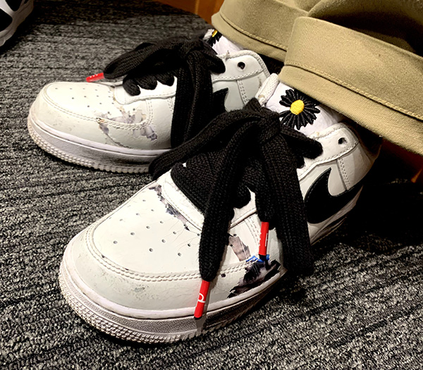 大貫「最近はナイキ エアフォース1“パラノイズ”ばっか履いてます。でも時々、コンバースのオールスターを履くとファッション的に収まるなって時はありますね。あと、今年になって初めてグッチのスニーカーを買ってみました」
