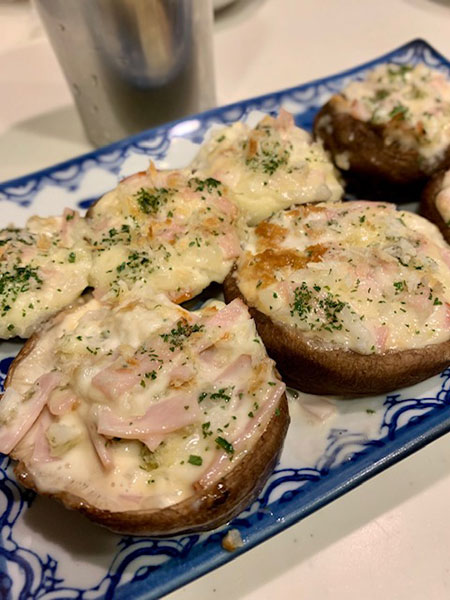 2,混ぜた材料を生どんこに乗せ、パン粉とパセリをまぶし、140度くらいのオーブントースターで、軽く焦げ目が付くくらい焼く。