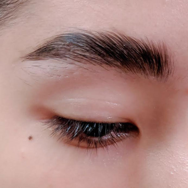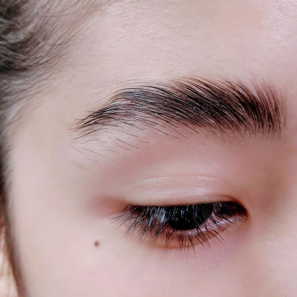 SNSで流行りのくっきりと筆で描いた”Insta-Brow”とは対極の、眉頭をコームで梳かし上げ、眉尻にかけ梳かしつけるだけの自眉をいかした自然な眉毛。