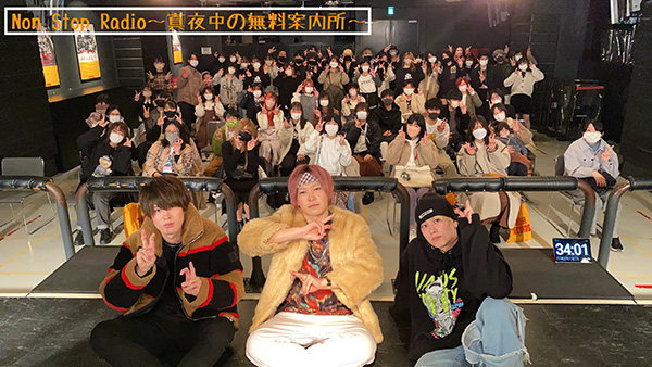 人生初の公開収録。そして、久々に人前でのイベントということで若干緊張気味の3人でしたが、終盤では、リスナーの“懺悔したい出来事”を紹介しつつ、いつも通りのギリギリなトークを繰り広げました。