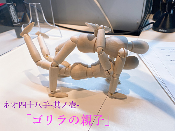 デッサン人形を使いつつ、やり方を確認した結果…「ゴリラの親子」という体位がネオ四十八手の仲間入りとなりました。