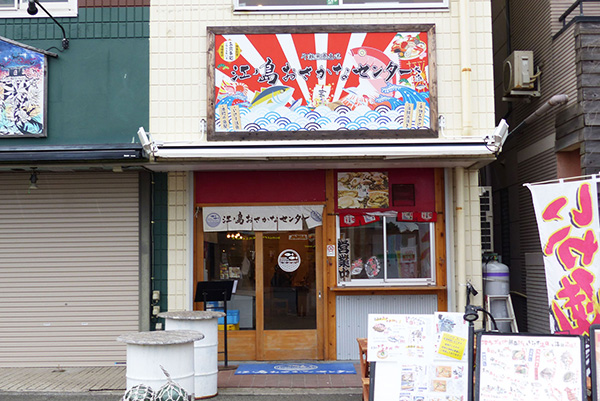 さばいたお魚を持ってやってきたのは、「片瀬江ノ島駅」から徒歩10秒のところにある「江ノ島おさかなセンター」。