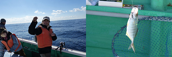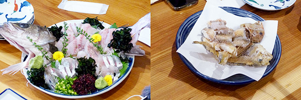 藤井さんが釣ったカイワレはお刺身に、海野さんが釣ったアマダイは天ぷらにして舌鼓。