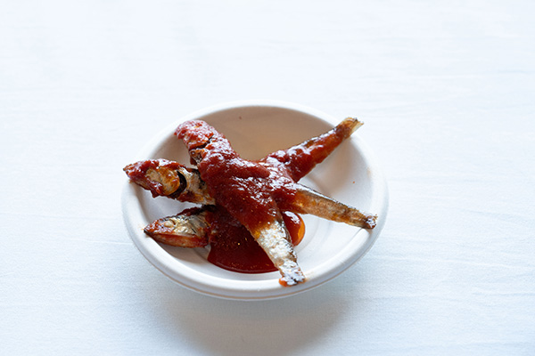 煮干しと同じくカタクチイワシでつくられたアンチョビの代わりに、出し殻の煮干しを使ったもので、野菜につけて食べても、パスタソースにしてもおいしいそうですよ。