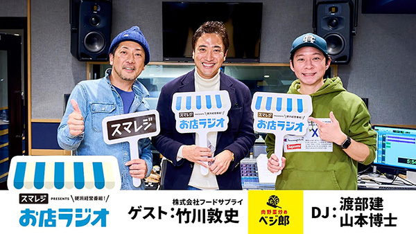 そしてゲストは、渡部さんの推し店舗!「肉野菜炒め ベジ郎」を運営する、株式会社フードサプライ代表取締役社長、竹川敦史さんでした。
