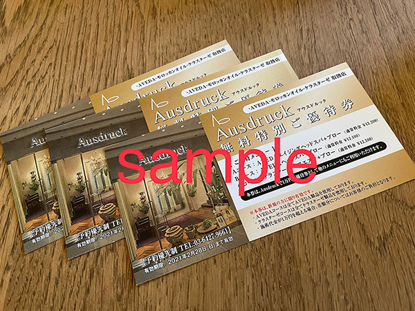 美容室「Ausdruck」の無料特別ご優待券を3名様に。