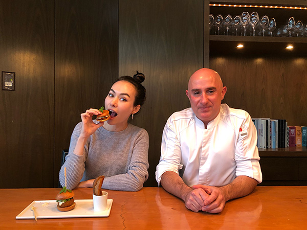 「TWO ROOMS」オーナーシェルのマシュー・クラブさんに、シャウラの大好物バーガーをご紹介頂きました。