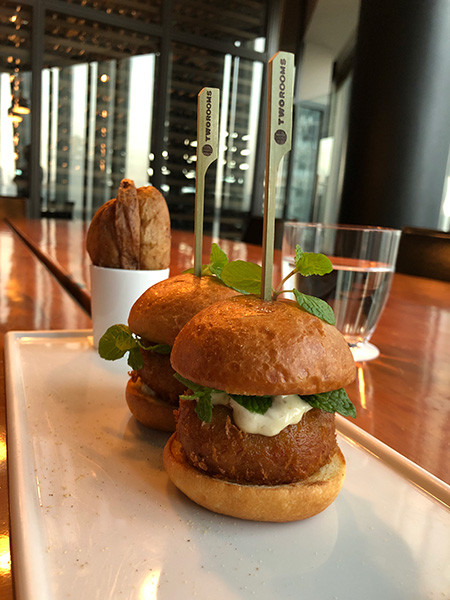「クラブケーキスライダーズ」は、自然な甘みのソフトバンズに蟹の身がぎっしり入ったクラブケーキをサンドしたミニバーガー。