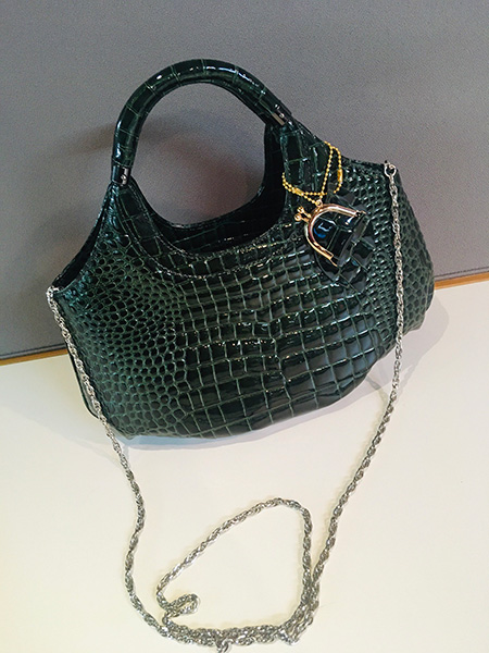 ショルダーでも、手持ちでもOKの2 wayバッグ。二人が注目していた"がま口"も可愛いです。カラーはメジグリーン以外にも、グレー/ブラック/ネイビー/ピンク/レッド/若草などがあります。