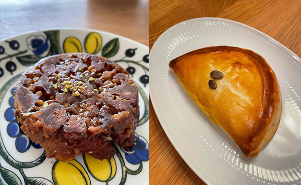 国産かぼちゃパイと、3種のナッツのクロッカン!
