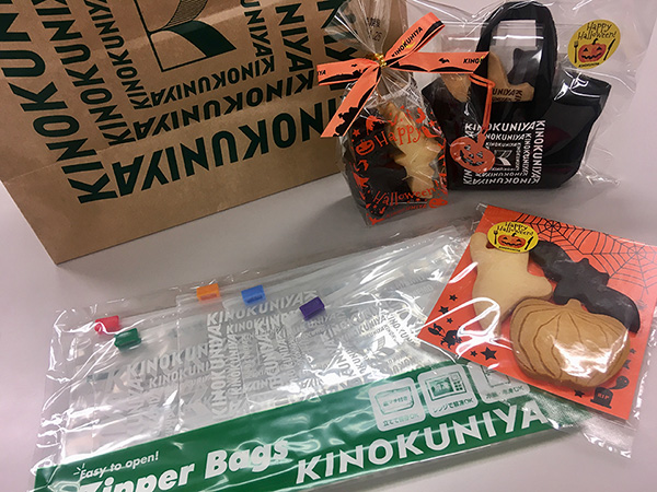 今日のプレゼントは、B1F「紀ノ国屋」のハロウィンお菓子とスライドジッパーバッグをセットにして3名様に。