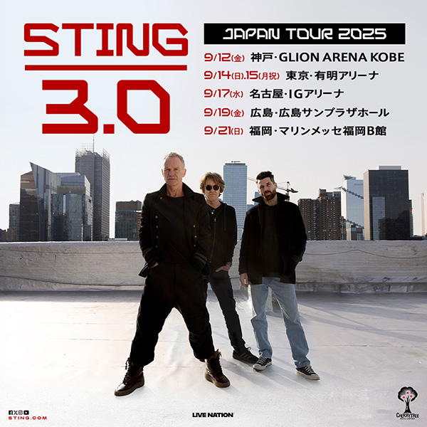 さらに間近にせまったStingの来日公演「スティング 3.0 JAPAN TOUR」の見どころを、企画・制作・招聘するLIVE NATION JAPANにたっぷりと伺います!