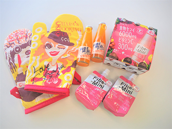 ・Charaの直筆サインの入ったオリジナルグッズ「CCCミトン」と、 Fibe-Mini、Fibe-Miniプラス、Fibe-Miniゼリーが入ったFibe-Mini詰め合わせを3名の方に
