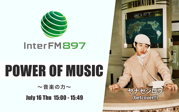 7月16日(木)15:00からは、昨年デビューしたヤナセジロウのソロ・プロジェクト、betcover!!から、ヤナセが選曲を担当!
