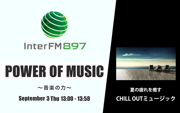 9月3日木曜日13時からは、夏の疲れを癒すチルアウト・ミュージック特集。