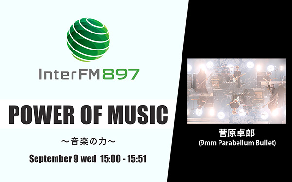 9月9日(水)15:00からは、9mm Parabellum Bulletの菅原卓郎が選曲を担当!