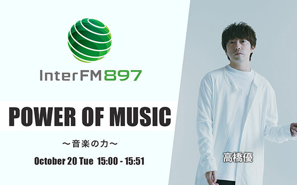 10/20(火)15:00からは、メジャーデビュー10周年を迎えたシンガーソングライター、高橋優が選曲を担当。