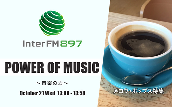 10月21日(水)13:00からは、午後の昼下がりに心地いい、メロウ・ポップスをお届け。