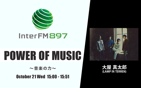 10月21日(水)15:00からは、LAMP IN TERRENのギター、大屋真太郎の選曲をお送りします。