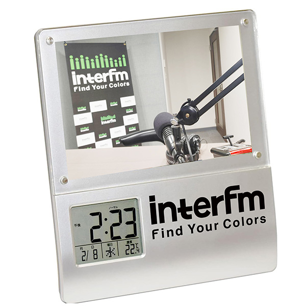 様々な番組のDJsの声を録音した、「intefmロゴ入りアラームクロック」をプレゼント。