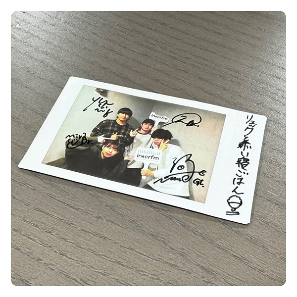 番組放送終了後、バンドオフィシャルXの投稿に感想を付けて引用リポストしてくれた方1名様に、メンバーのサイン入りチェキをプレゼント致します!