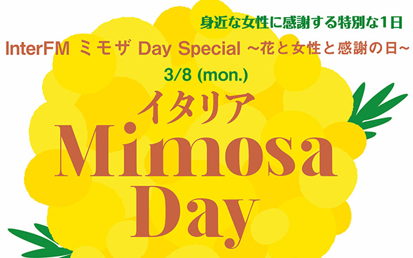そこで、「身近な人に感謝の気持ちを伝えよう」をテーマに、イタリアを代表する菓子メーカー「日本フェレロ」、在日イタリア商工会議所と連動し、「InterFM897 ミモザ Day Special 〜花と女性と感謝の日〜」をお送りします!