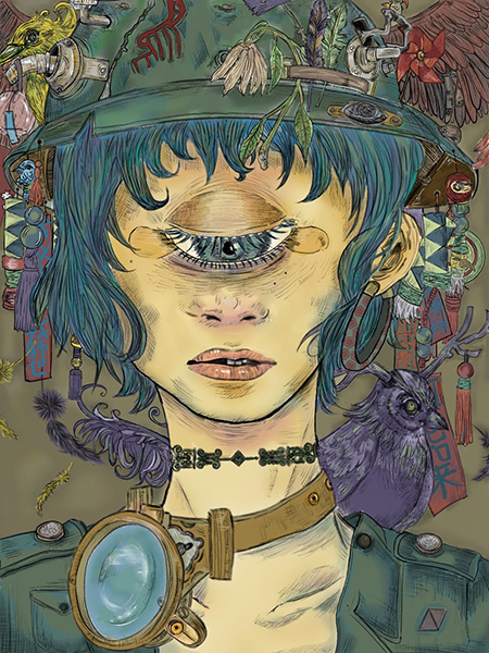 本の装丁、CDジャケットアートワーク、アパレルや眼鏡ブランドとのコラボなどの活動も行っている方です。