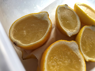 ・レモンを半分に切って中身をくり抜く