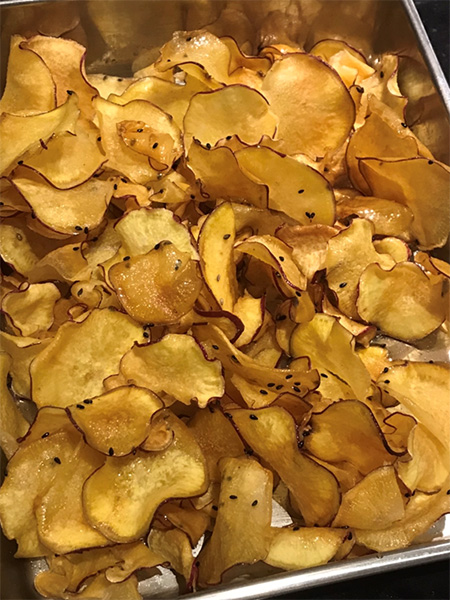 今週作ったのは、「サツマイモチップス」(大学芋風)です。