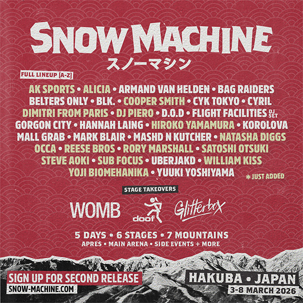 今週は、来年3月に長野県白馬のスキー場で開催される、音楽とスキーやスノーボードを一緒に楽しめる冬フェス「Snow Machine」をフィーチャー!