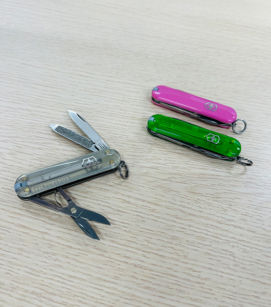 スイスでは親から子供へマルチツールをプレゼントする習慣があるのですが、この写真で麻耶さんが持っているのは、子供の頃にご両親からプレゼントされたVICTORINOXのマルチツールです!
