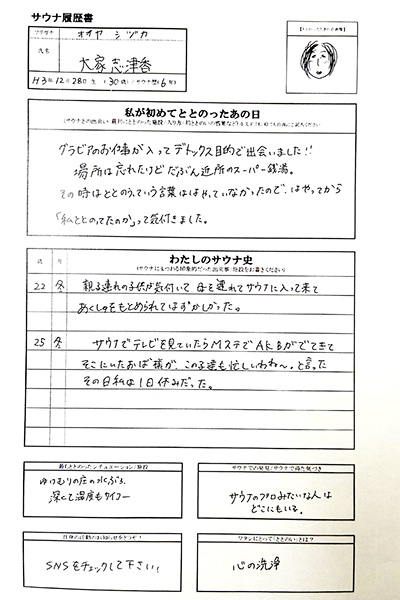 今回もシーズン1に引き続き、サウナ履歴書を書いてもらいました。