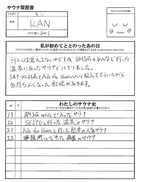 まずは、RANさんのサウナ履歴書から見ていきます!