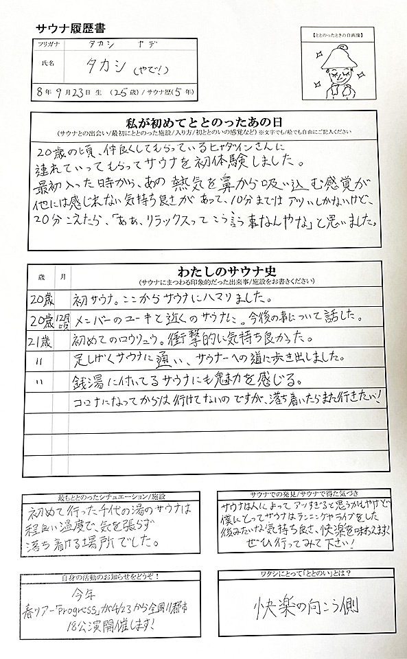 今回は、サウナー・タカシさんのサウナ履歴書を掘り下げていきました。
