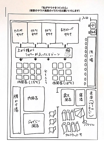ということで、洲崎さんに理想のサウナを描いてもらいました!!