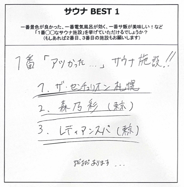 ラジオネーム:ちゃんゆーさんからの初サウナレポートです!