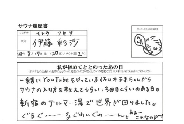 そんな伊藤さん、ととのったときの自画像は口半開きで魂が抜けちゃっています。