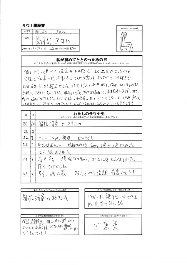 後半は、アロハさんのサウナ履歴書を見ていきました!