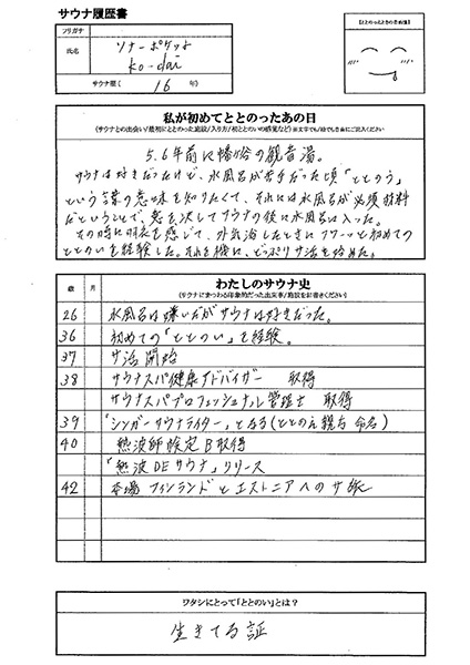 さっそくko-daiさんのサウナ履歴書です。