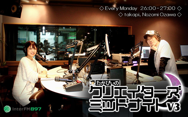 ・レギュラー放送:「たかぴぃのクリエイターズ ミッドナイトV3」