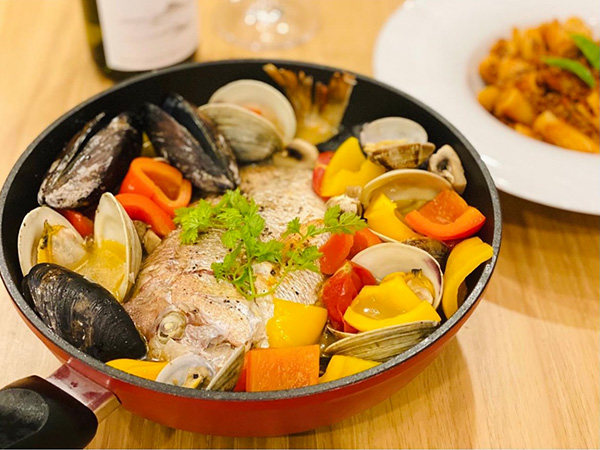 お野菜もたっぷり、お魚の良質な脂肪酸DHAもとれて美味しいというアクアパッツァ。