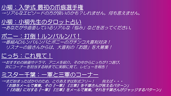 「お題をメールで募集。その『一軍』『三軍』を千葉さんが答えるパターン」